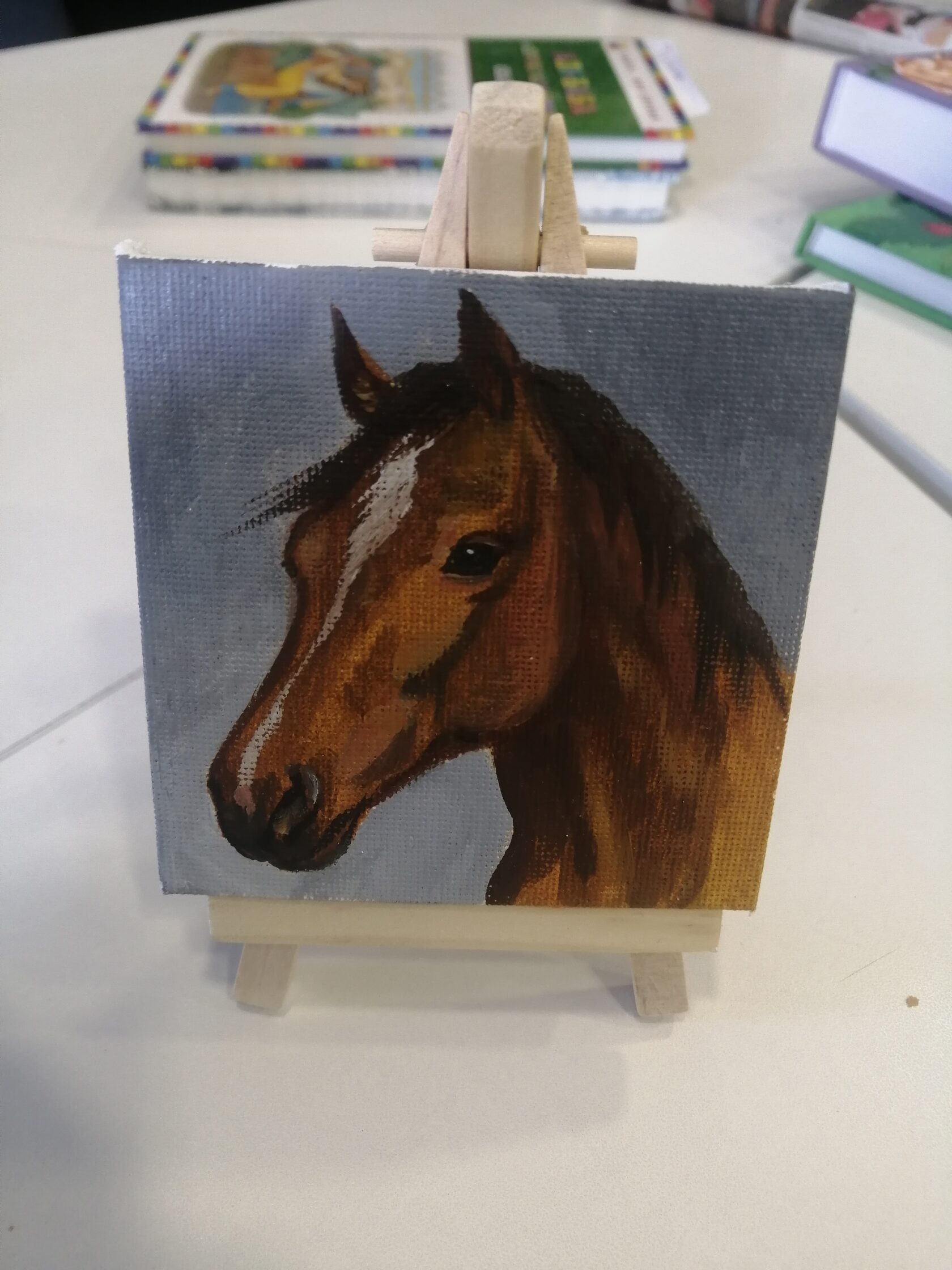 Вчера Ольга, вместе с супругом Сергеем, известным музыкантом, прибыла в библиотеку не с пустыми руками. В дар библиотеке она преподнесла миниатюрную картину с изображением лошадки и трогательной дарственной надписью. Ведь 2026 год – год Лошади!