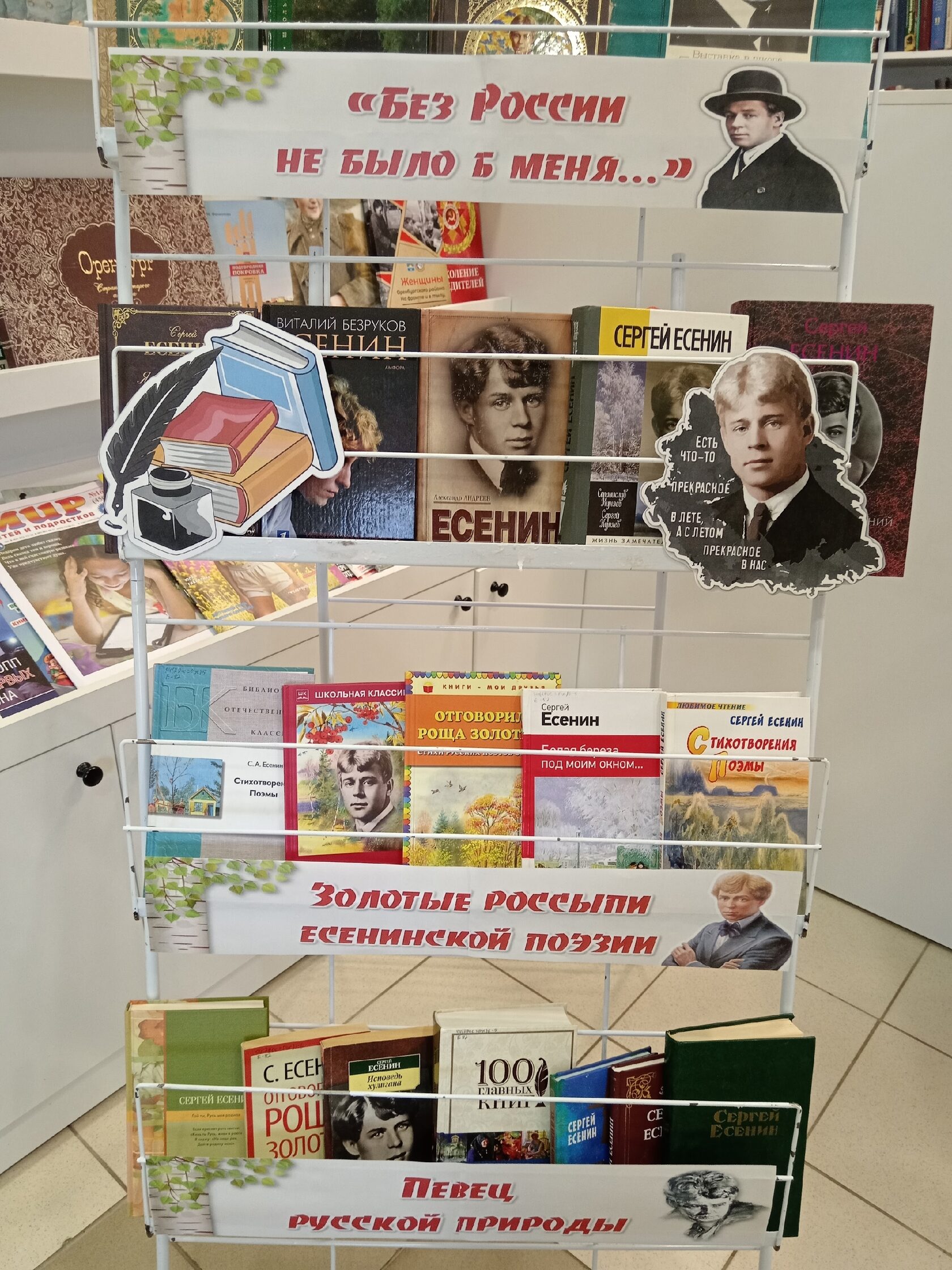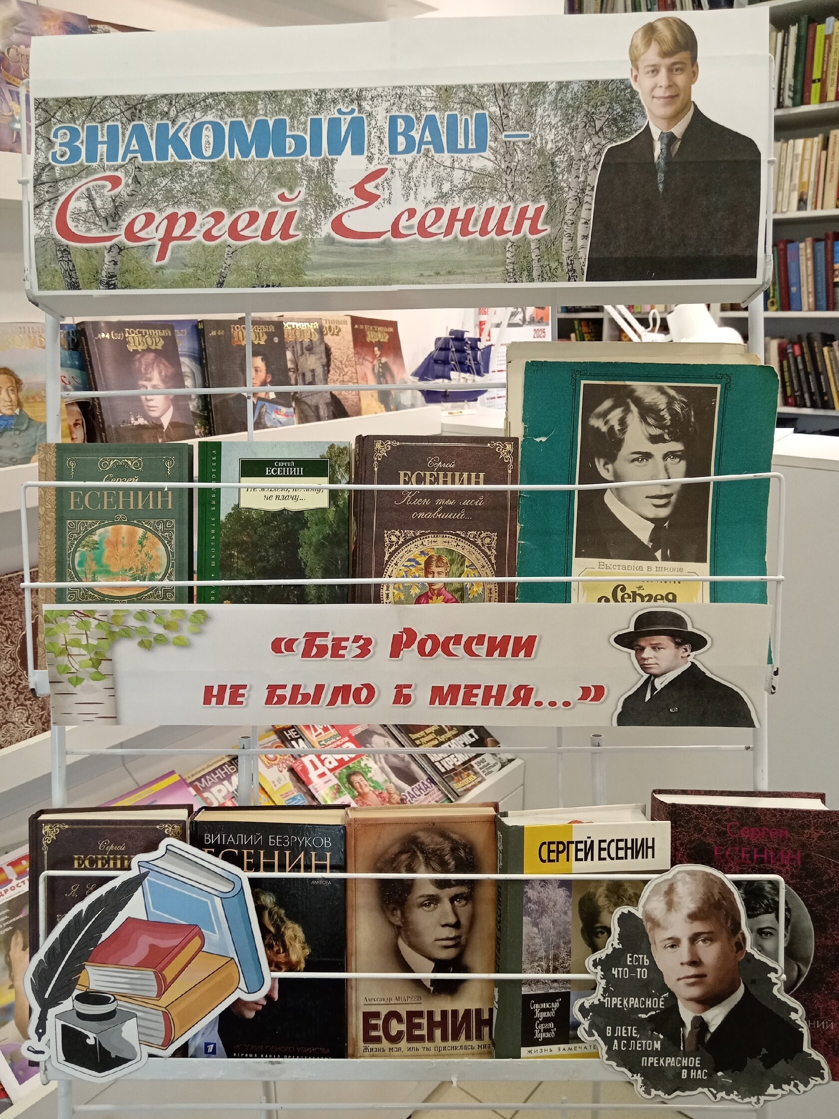 В рамках X районного музыкально-поэтического фестиваля «Есенинская осень», посвященного 130 – летию со дня рождения и 100-летию памяти С.А. Есенина, П-Покровская модельная библиотека оформила книжно-иллюстративную выставку «Знакомый ваш – Сергей Есенин».