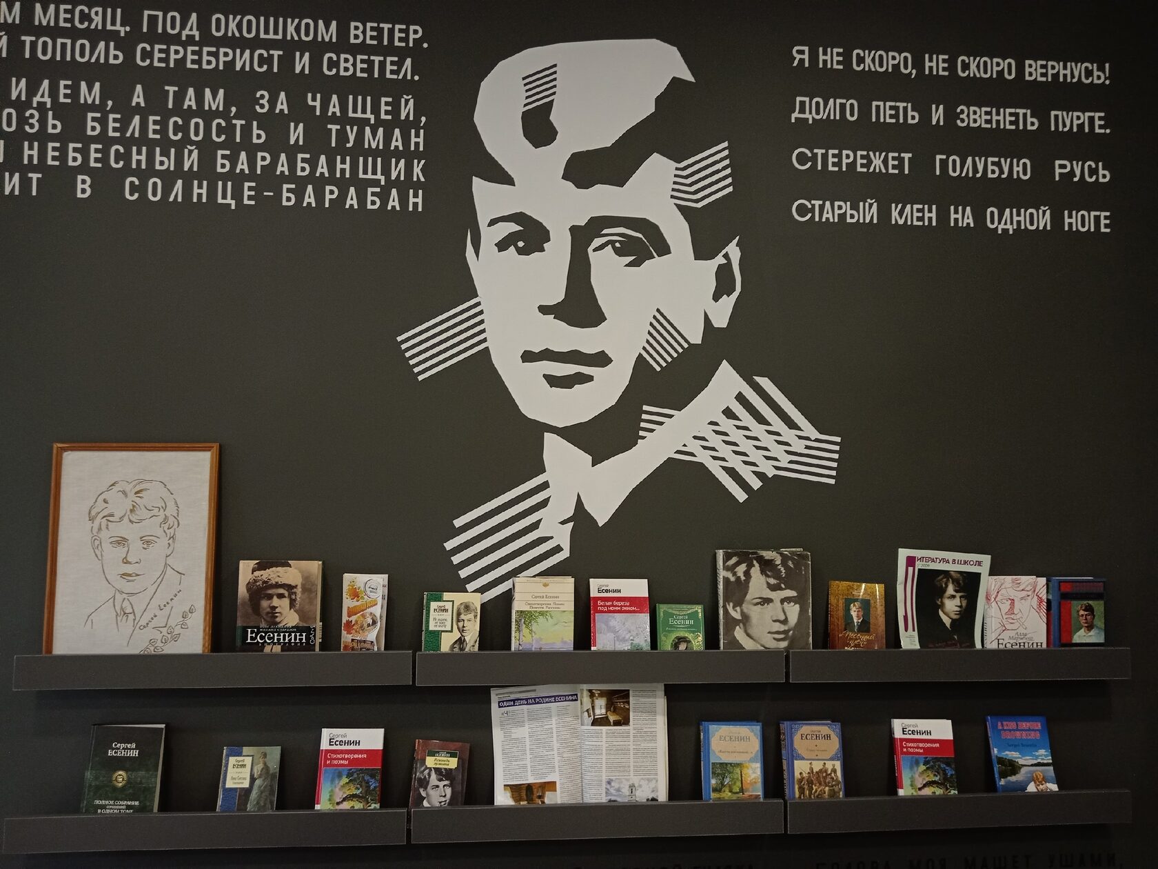 Вниманию читателей представлены сборники лучших стихотворений автора о любви, Родине, природе. Экспозиция дополнена интересными фактами из жизни С. А. Есенина и фотографиями поэта и его близких.