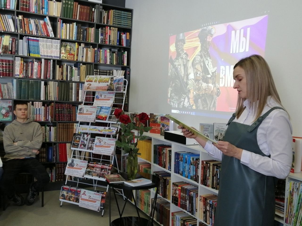 📚 Также в библиотеке оформлена книжная выставка «СВОих не бросаем!». Библиотекарь познакомила ребят с книгами, которые освещают хронологию происходящих событий на Донбассе. Это сборники современной патриотической литературы «Донбасс. Дорога домой», «Дневники безумных лет «Мы наши», «Zа право жить», «Солдаты СВО на фронте и в тылу», которые посвящены судьбам погибших и живых простых «тружеников войны», уже третий год совершающий свой ратный подвиг на полях СВО.