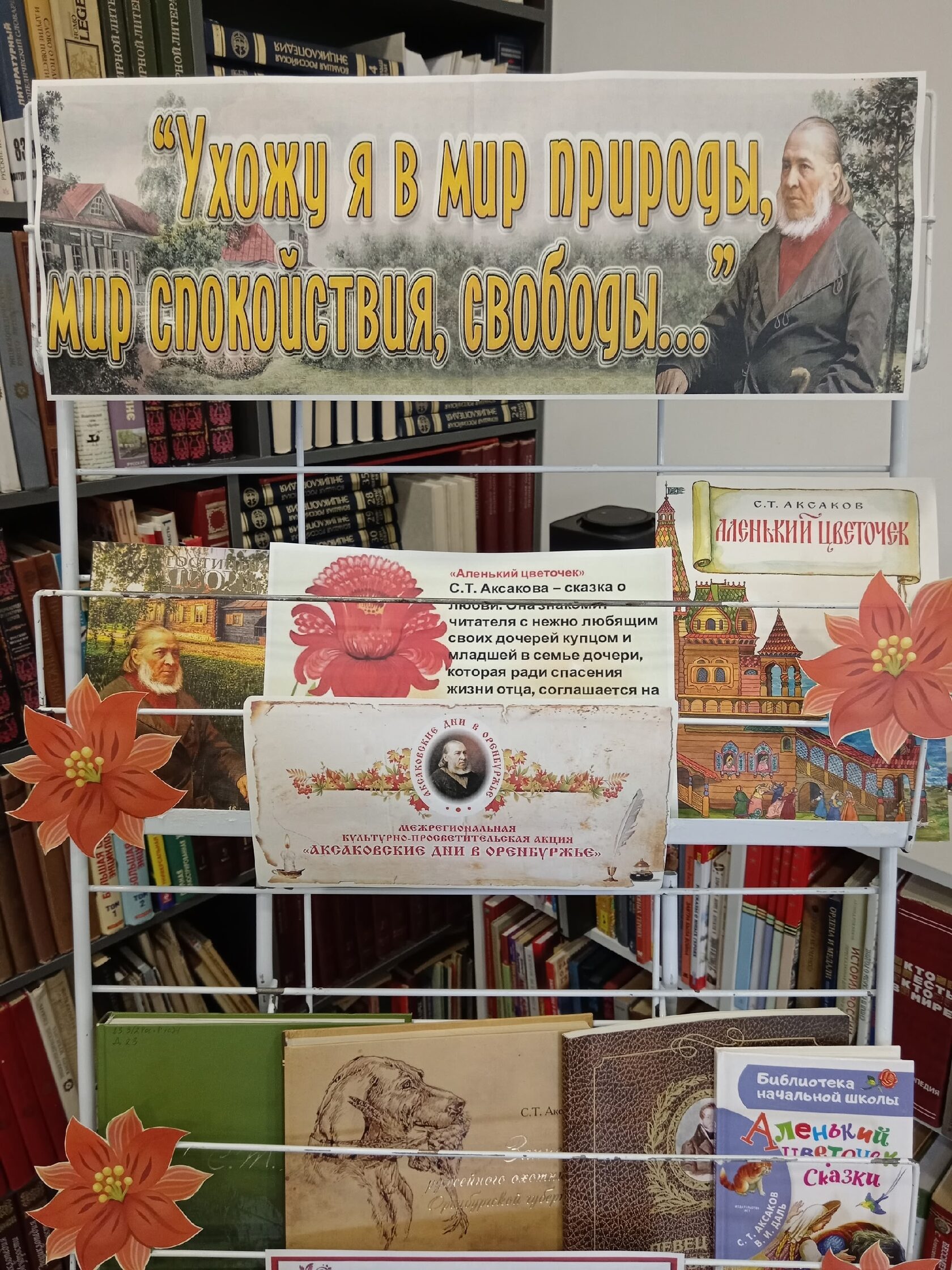 В рамках культурно-просветительской акции «Аксаковские дни в Оренбуржье», приуроченной к 234-летию со дня рождения выдающегося писателя Сергея Тимофеевича Аксакова, в П-Покровской модельной библиотеке оформлена книжно-иллюстративная выставка «Ухожу я в мир природы, мир спокойствия, свободы…».