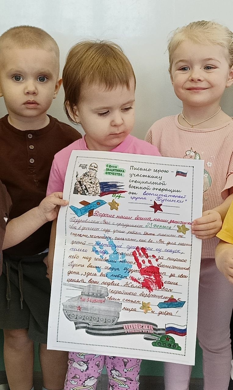 Наши малыши из группы "БУСИНКИ" составили совместное письмо для бойцов, которое мы отправим с очередными посылками в зону СВО.