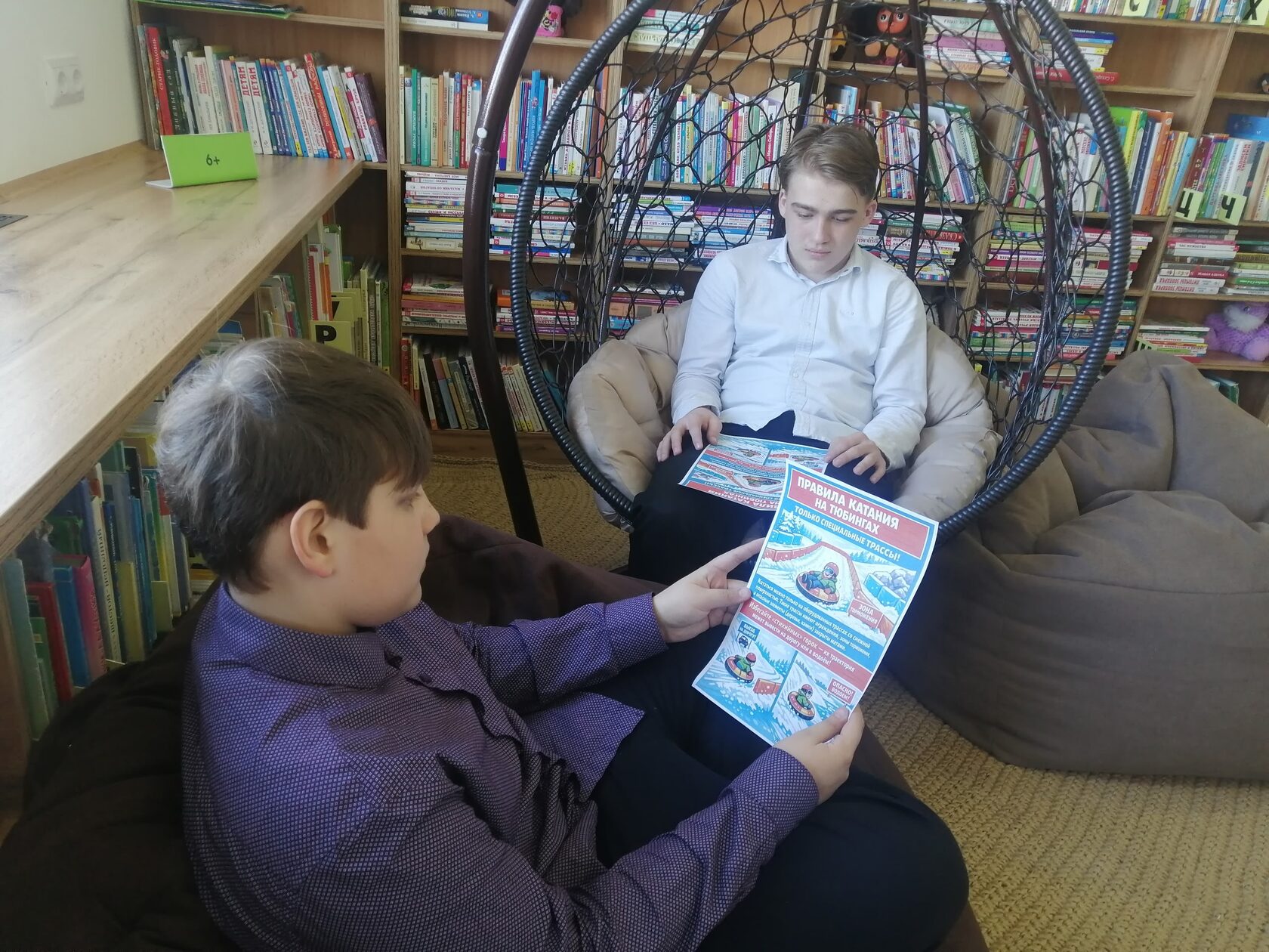 В библиотеке проходят профилактические беседы и уроки-предупреждения, посвященные безопасной зиме, где детей информируют об опасности катания на ватрушках (тюбингах). Сотрудники библиотеки рассказывают школьникам о правилах поведения на горке, рисках использования несанкционированных трасс, важности защиты и выбора безопасных мест для зимних игр.