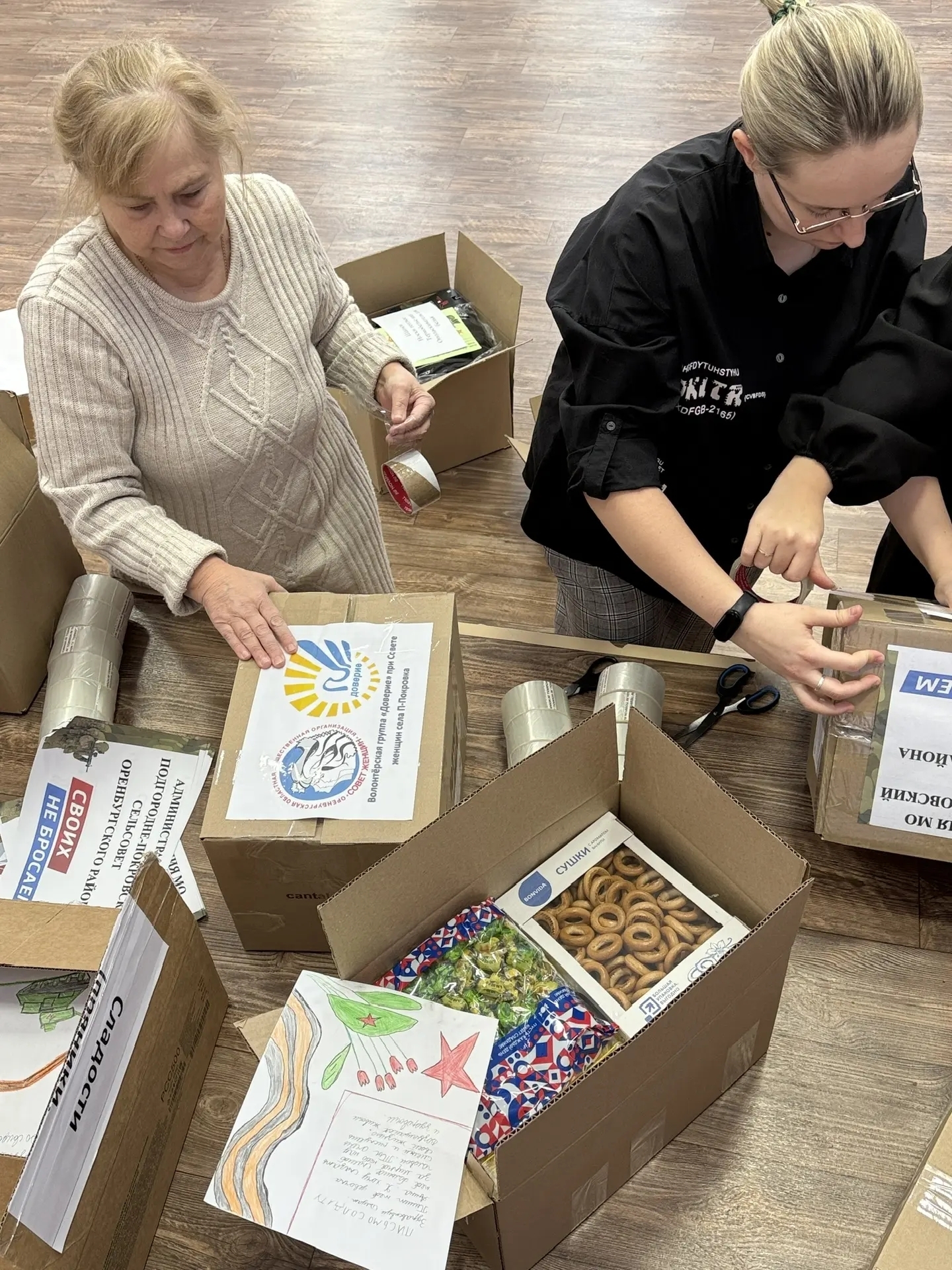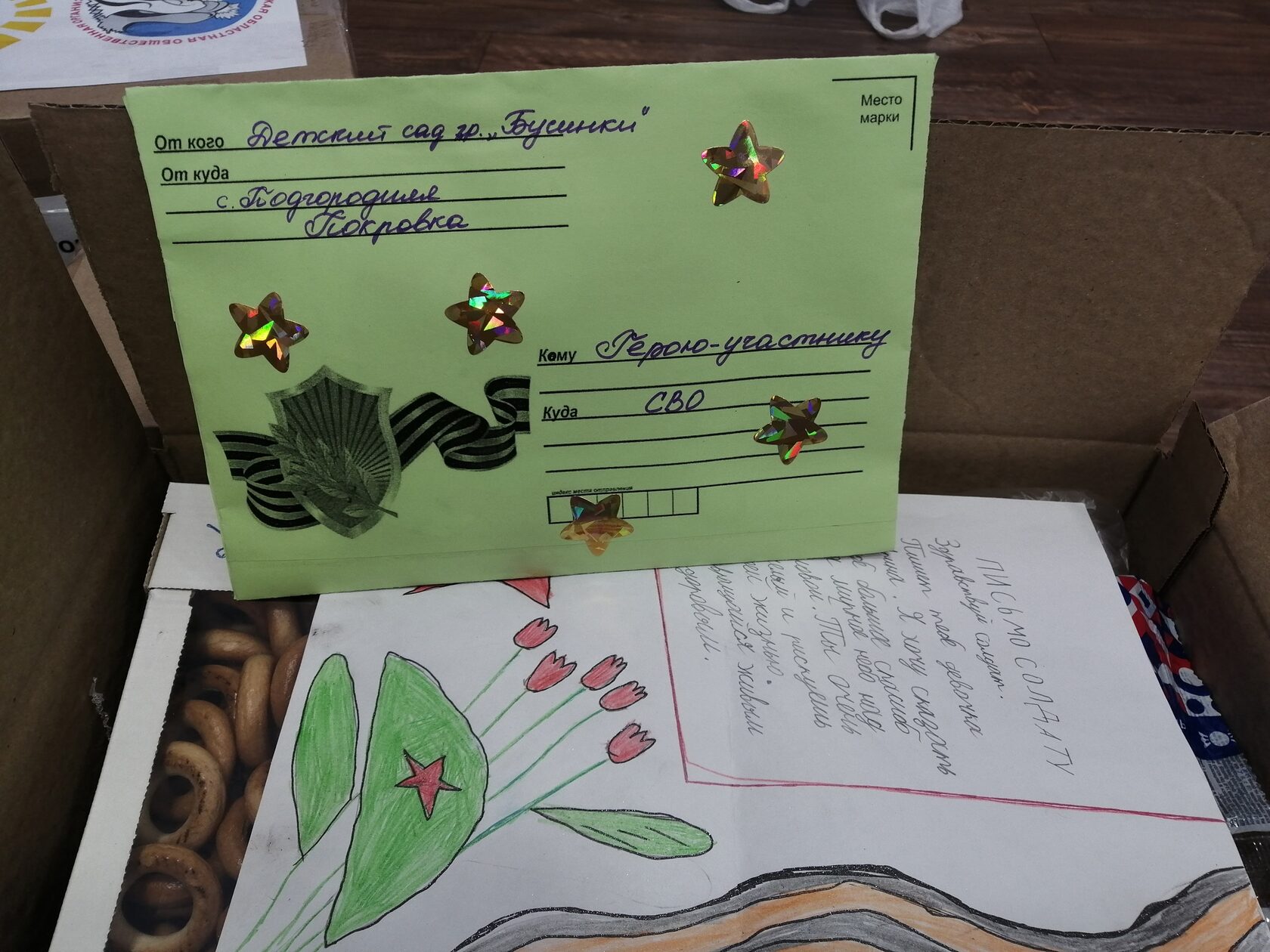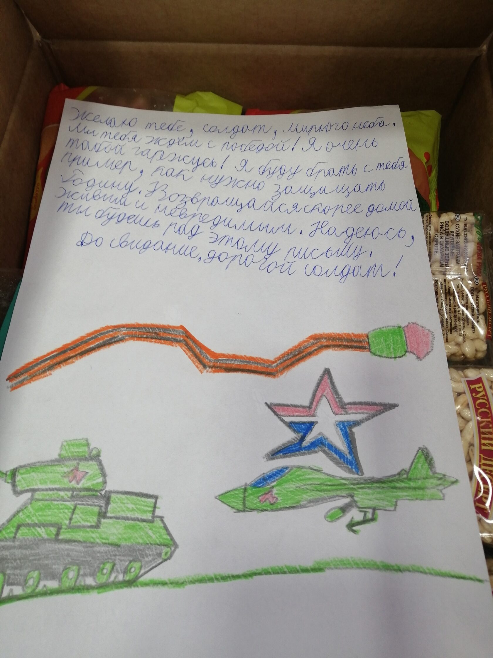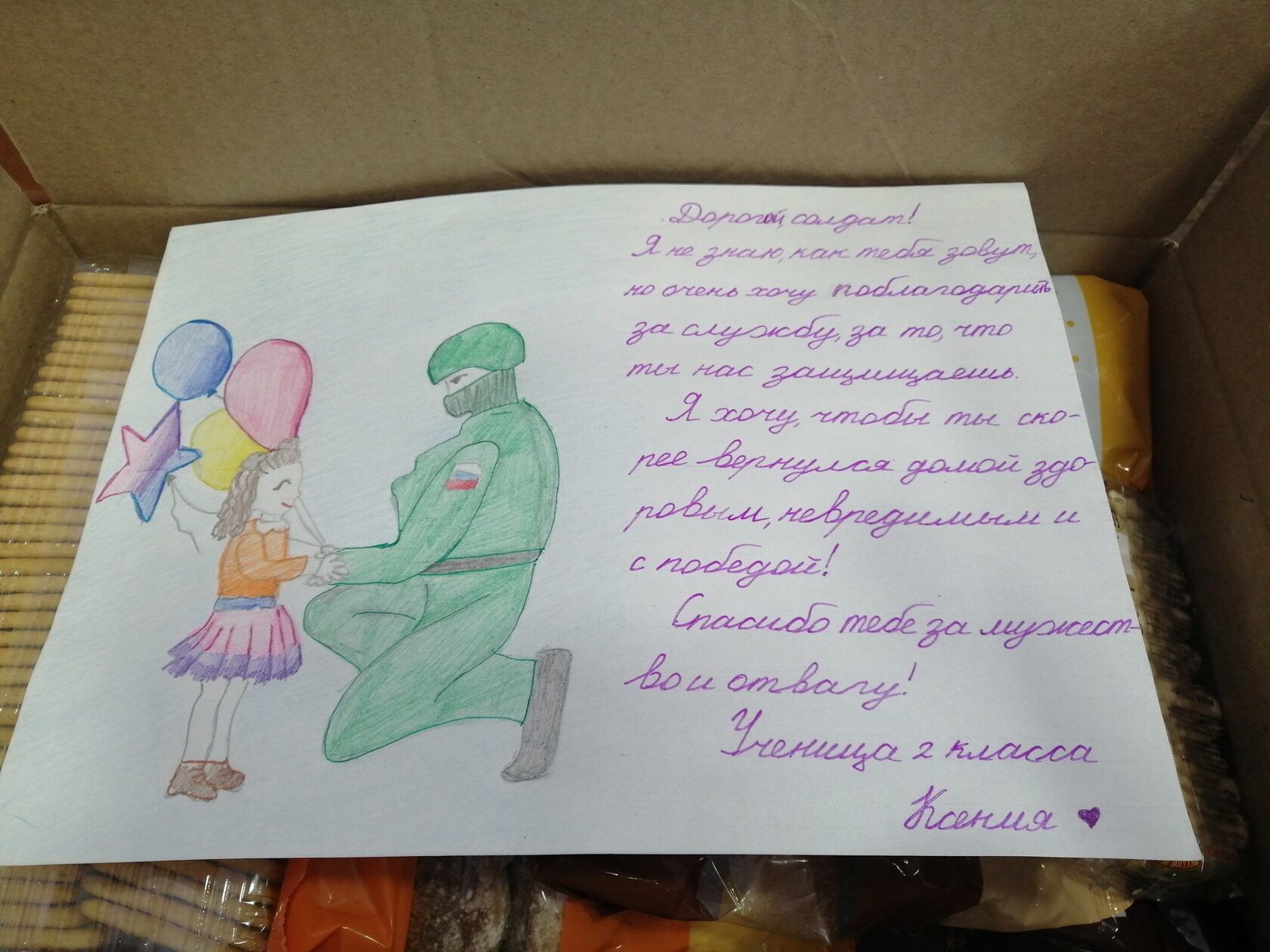 В каждую коробку были вложены средства гигиены, теплые вещи, полевой душ, письма от детей, окопные свечи, продукты питания и другое необходимое в полевых условиях.